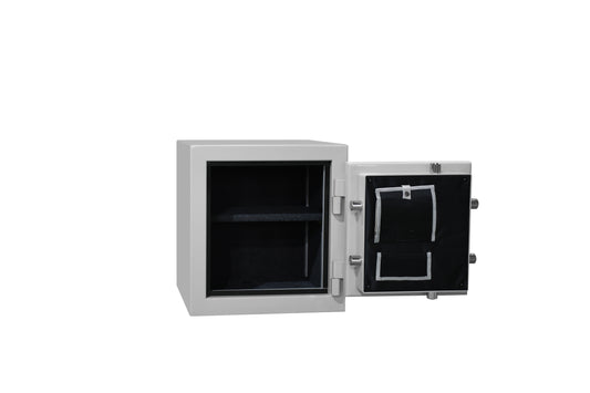 - Contains an integrated electronic locking mechanism with a time-delay release, and is secured in place, or is of a size and weight that cannot be easily removed.
